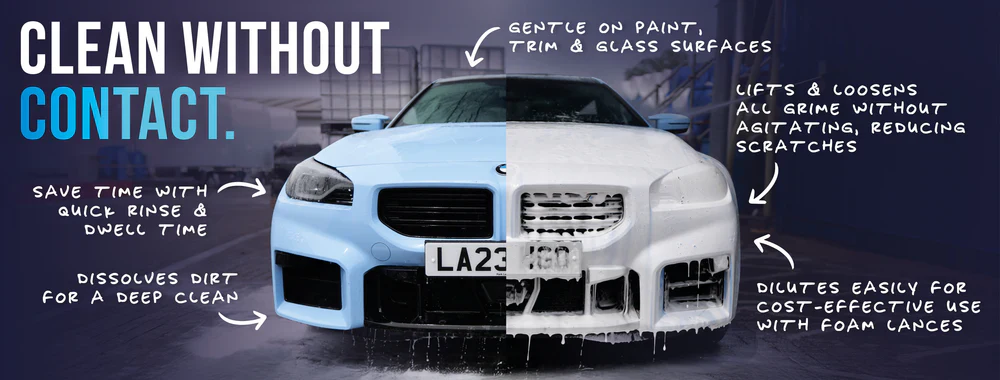 After testing over 100 different formulations, we created Snowstorm a contactless caustic wash solution designed to be used with a foaming lance. That is the ideal product for anyone looking to cut down on the elbow grease that comes with traditional washing methods and, still get a high-quality finish.