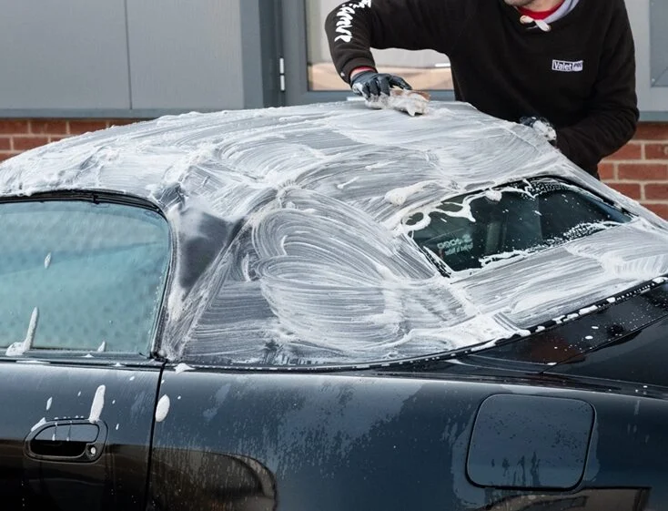 ValetPRO Drop Top Cleaner is a ready-to-use spray on and agitate convertible hood cleaner. The pH neutral formulation has been designed with eco-friendly cleaning agents and works fast on dirt and mould.  When the product has been rinsed off, we suggest using drop top cleaner to protect your convertible hood from future grime and dirt.Â
