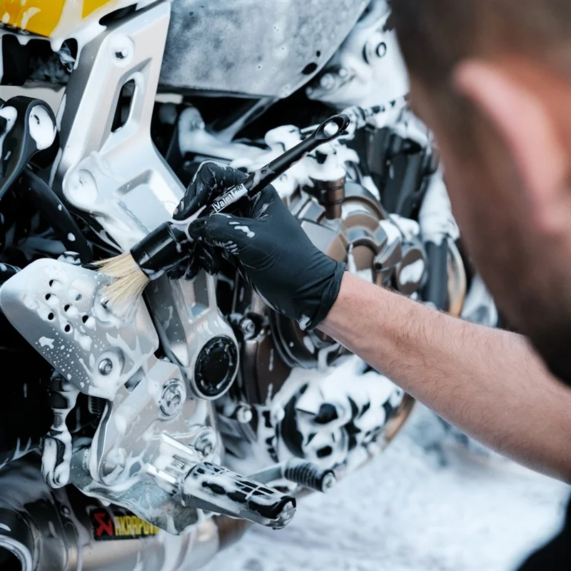 It also gets used around engine bays, too. The soft bristles ensure gentle agitation on delicate surfaces.